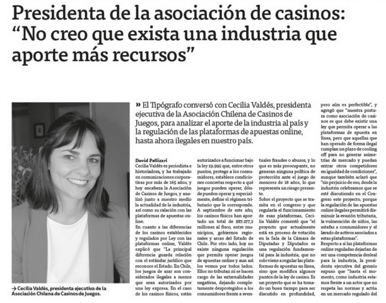 Presidenta de la asociación de casinos: “No creo que exista una industria que aporte más recursos”
